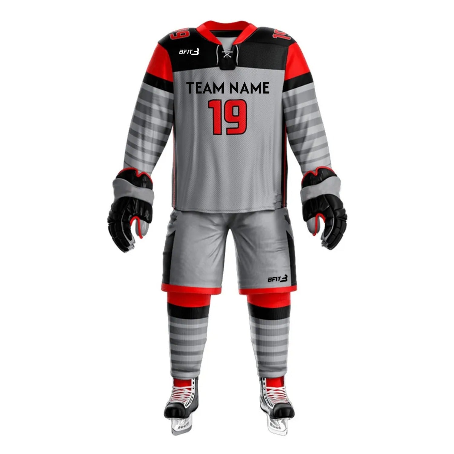 3-Piece Set – Includes custom jersey, hockey shells (shorts), and socks